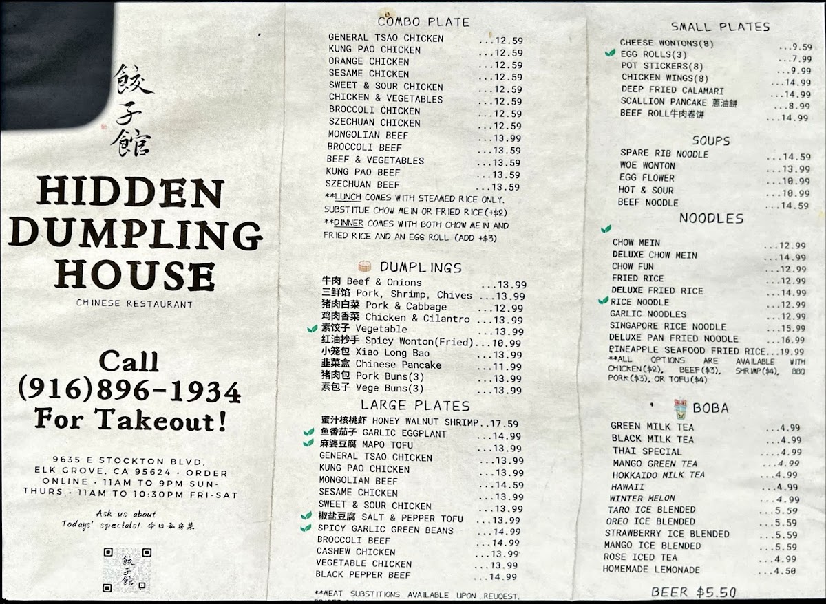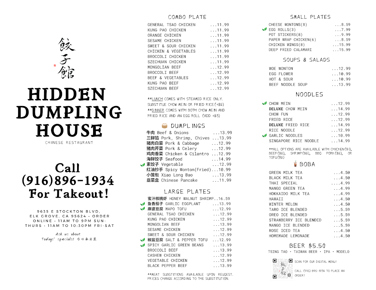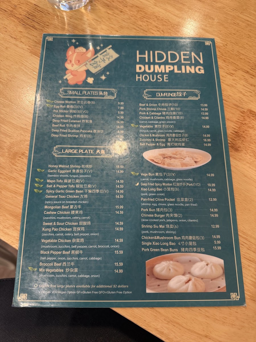Hidden Dumpling House Menu